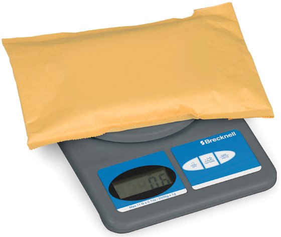 Esta báscula electrónica simple de solo peso es perfecta para cartas y paquetes de correo pequeños para garantizar el franqueo correcto sin pagar en exceso.