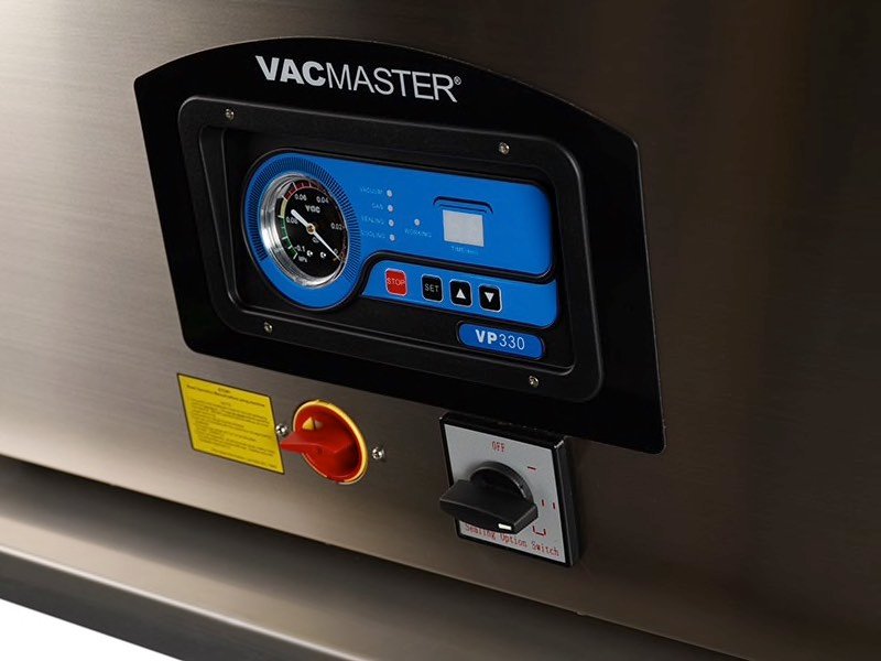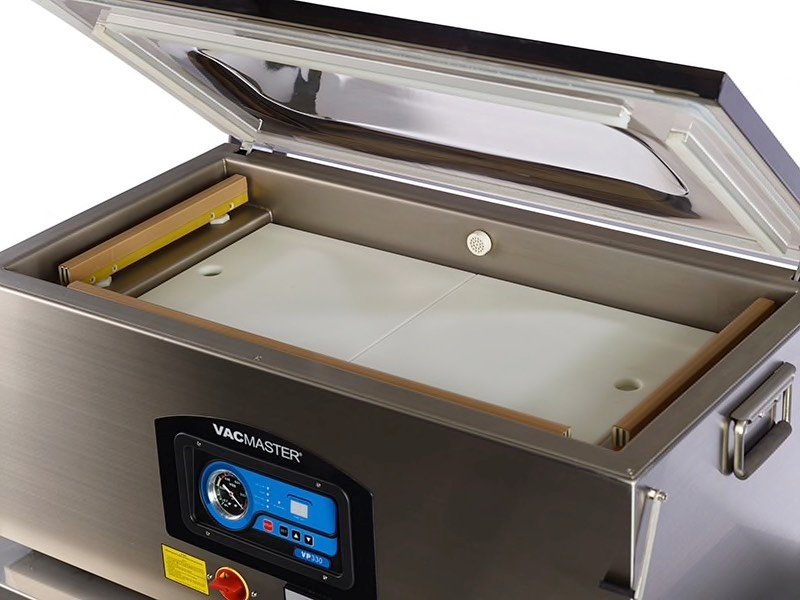 El VP330 está diseñado para satisfacer las necesidades de alta capacidad de las operaciones comerciales e industriales. Tiene tres barras de sellado en total, dos de 12.5 «a cada lado de la máquina y una de 27» a lo largo del frente. La máquina tiene un interruptor de opción de sellado que permite seleccionar la barra de sellado o la combinación de barras de sellado que estarán en uso. Con un perfil grande, el VP330 está diseñado para manejar cortes largos de carne o grandes cantidades de bolsas de menor tamaño para ser empacadas al vacío al mismo tiempo.